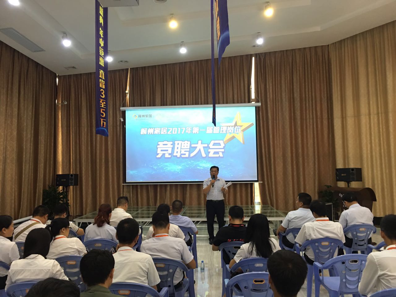 柳州家居2017年第一屆管理崗位競聘大會7月10日上午,柳州家居2017年第一屆管理崗位競聘大會在家之寶會議大廳舉行。本次競聘組織了專門的評審小組,擔任此次競聘?...