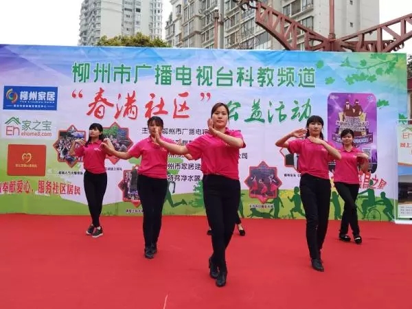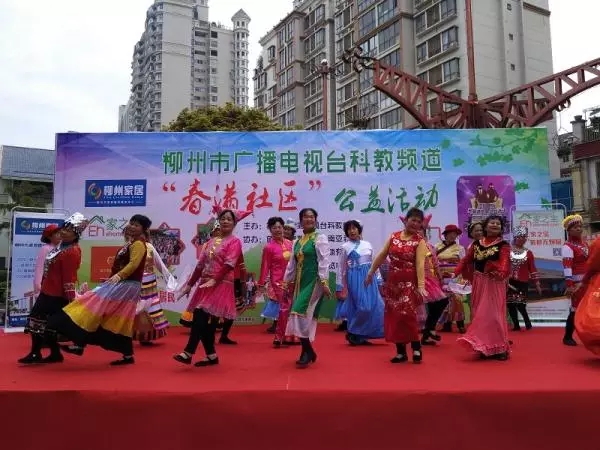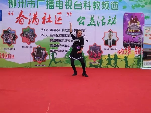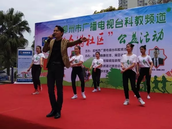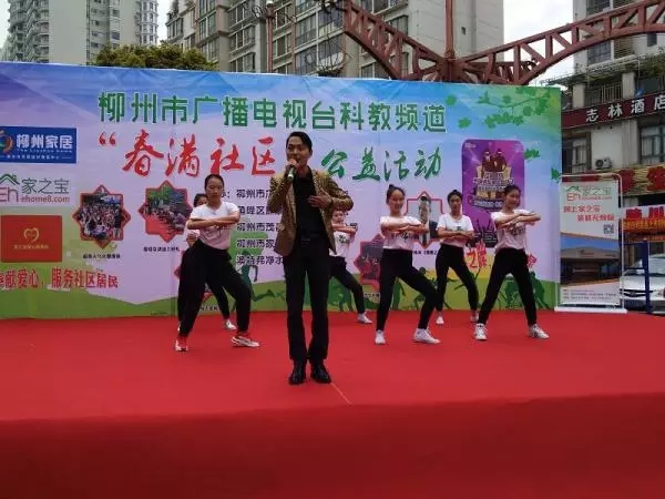 每場進社區活動必唱的《播霸之歌》今天當然也不能少,不同以往的是,這些曼妙的伴舞都是來自柳州馨藝舞蹈培訓中心的漂亮妹紙喲!看,咱們朱朱多享受、多賣勁。