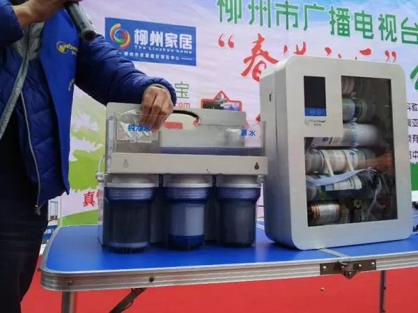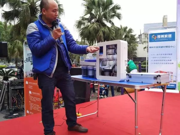 聽完歌之后,現場開啟了小小的“學習會”,來自美國澳特弗凈水器公司的技術人員上臺,給大家演示了凈水器的神奇功效,主持人季菲還給大家帶來了健康飲水知識小科普。