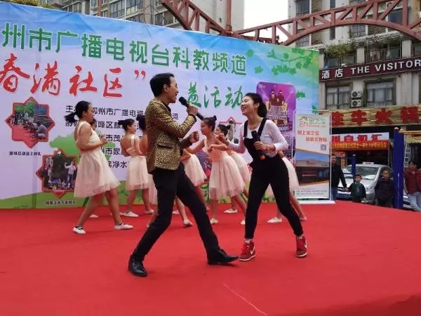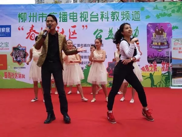 咦?柳州朱朱牽著一位美女的手出場了,這是要表演什么節目?原來兩人是要搭檔表演歌伴舞《小寶貝》!之后的每場“春滿社區”活動,朱朱都會邀請一位美女同臺獻唱喲!