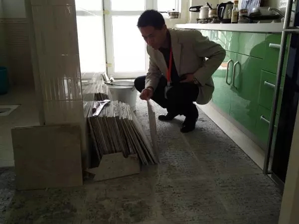 居民陶先生家廚房的地磚不知什么原因,很多都翹了起來。柳州家居“家之寶”愛心服務隊查看之后,為其設計了維修方案。