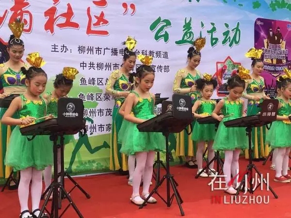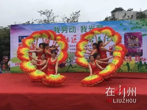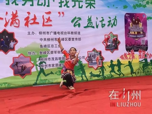 天空飄起了雨,但精彩繼續(xù),歌伴舞《我愛柳州山水美》,耳熟能詳?shù)囊魳罚渖险R有活力的動作,演員們像是要把內(nèi)心對柳州的愛跳出來呢!