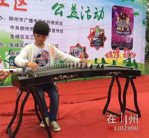 來自柳鐵二中的15歲姑娘黃藝帆,現(xiàn)場展示琵琶彈奏《彝族舞曲》。古典元?dú)饷琅鞒秩硕既滩蛔】滟澦齸