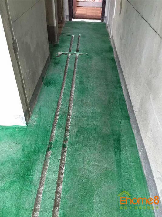 ② 在搞好清理的找平層上均勻地涂刷上防水劑后,凝固12小時以上再濕鋪地磚塊料。(涂刷防水劑時嚴禁接觸到鋼塑管道,以免腐蝕)。