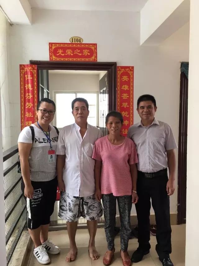 蒙先生早年在電纜廠操作失誤導致右手受傷,造成了生活上的很多不便。經濟來源也成了問題,孩子現(xiàn)在還在上學,生活艱辛。現(xiàn)一家三口住在一套經濟適用房里,裝修都是蒙先生的親戚朋友幫助裝修的,雖然很小但是非常干凈整潔。看到家之寶互聯(lián)網(wǎng)裝修IT中心總經理邱穎,柳州家居黨支部書記麻文俊與柳州電視及社區(qū)工作人員來,蒙先生和他的妻子非常的高興,也非常熱情。隨后,家之寶互聯(lián)網(wǎng)裝修IT中心總經理邱穎和蒙先生夫婦聊起了家常,得知原來蒙先生還是越南抗戰(zhàn)的后勤兵,家門口還有一副社區(qū)送的“家之光榮”的對聯(lián)。