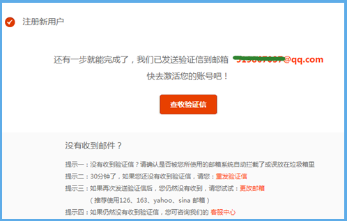 點(diǎn)擊【提交】按鈕提交注冊信息:查收驗(yàn)證信