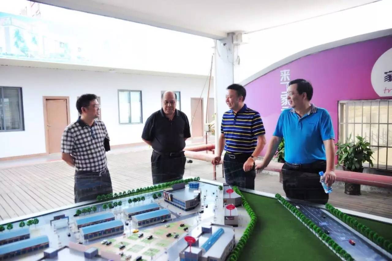(柳州市委統戰部調研組和李明亮董事長在柳州家居沙盤前交談)