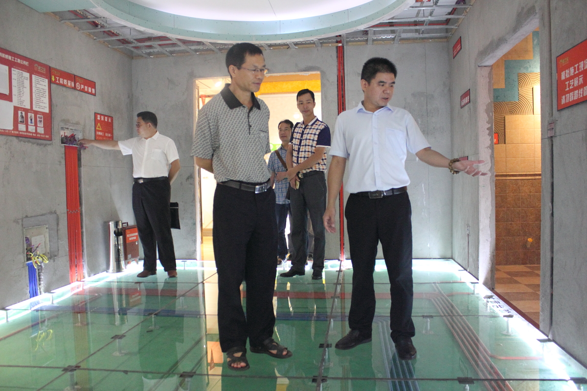 隨后,考察組來到完整家居體驗中心,參觀五大風格精裝實景樣板房、標準施工工藝樣板間及一線品牌材料展廳。