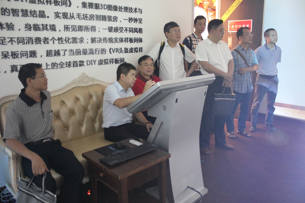 在家之寶DIY虛擬樣板間,先進的技術引起了考察組的濃厚興趣,邱總現(xiàn)場演示了操作過程。
