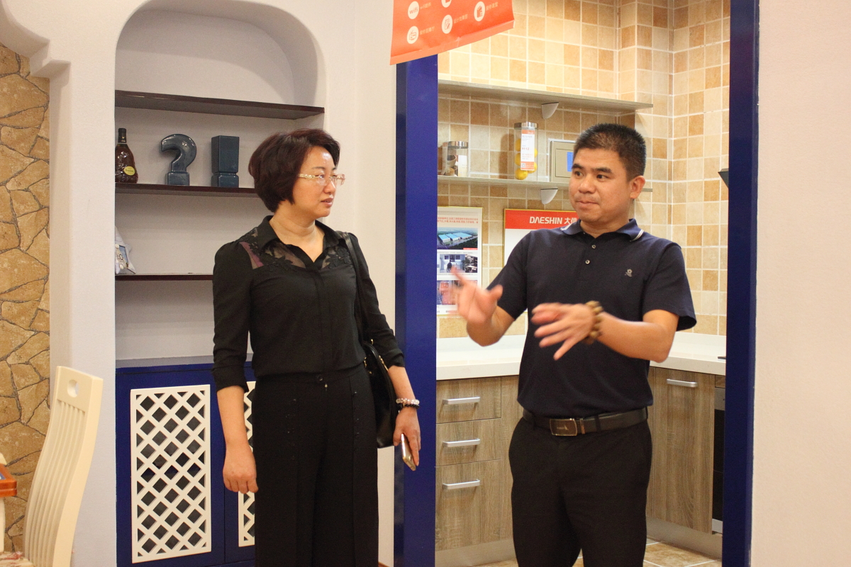 柳南區人社局譚局長一行先后參觀了家之寶辦公大樓、五大風格精裝實景樣板房、標準施工工藝樣板間及一線品牌材料展廳。在參觀中,家之寶IT中心邱總向譚局長一行介紹了家之寶互聯網裝修的運營模式、技術優勢、人才引進等方面的情況。
