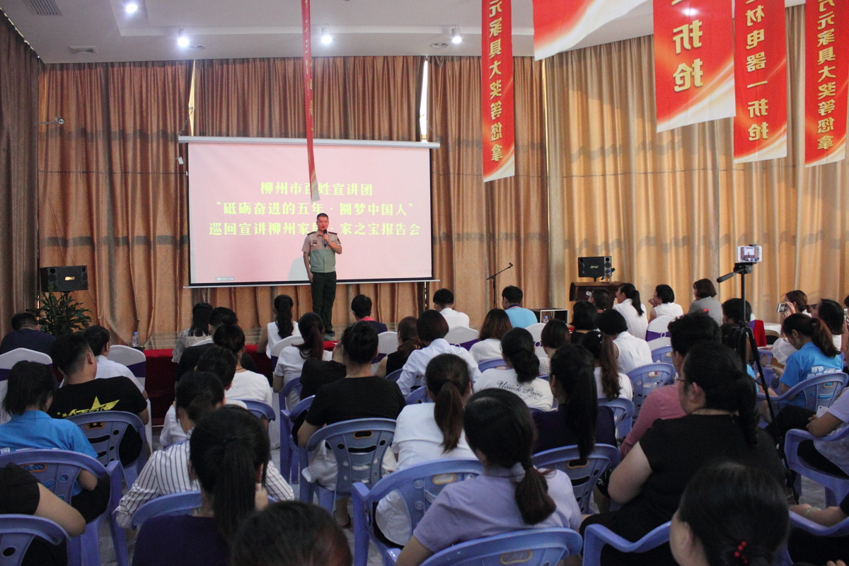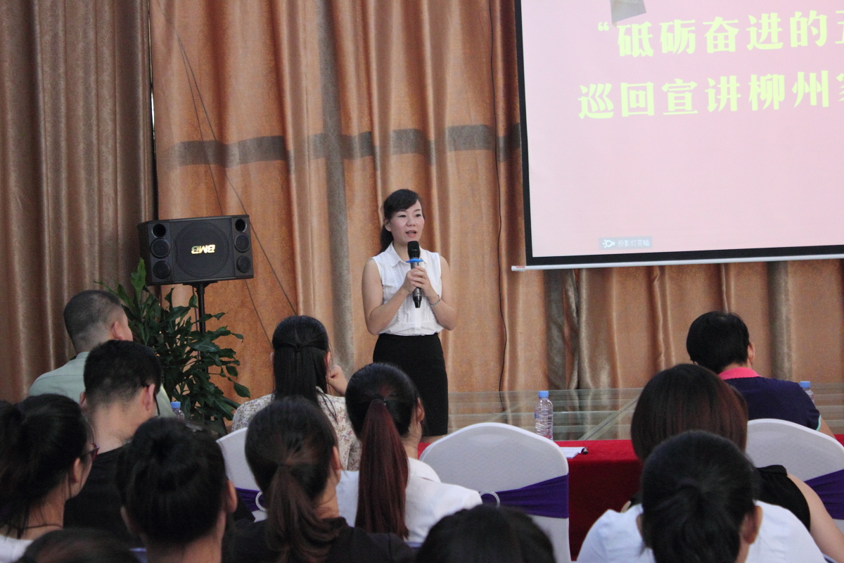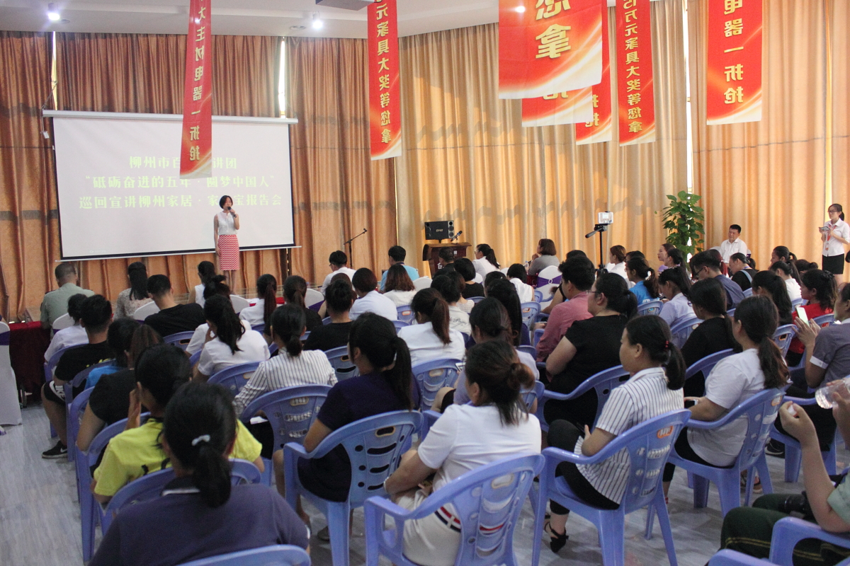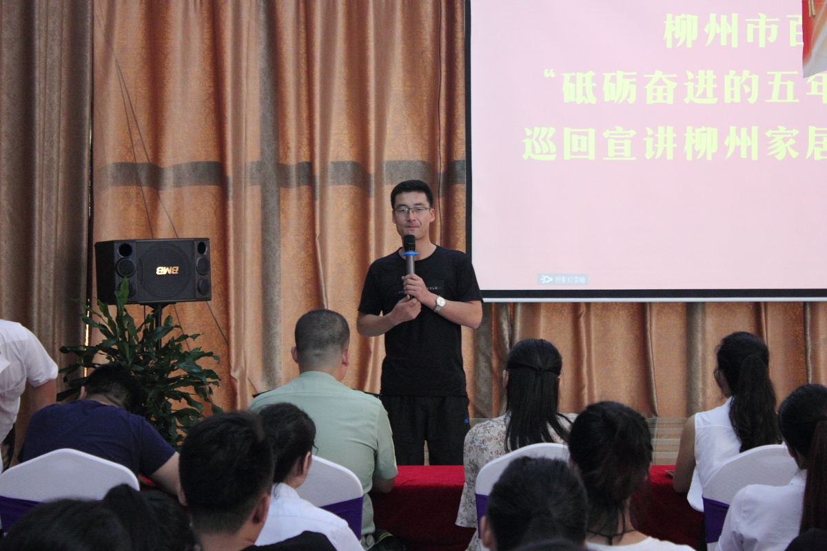 9月18日下午,在柳州市委講師團副團長藍紹才、市工商聯辦公室主任石悄平的帶領下,柳州市百姓宣講團走進柳州家居·家之寶,開展“砥礪奮進的五年·圓夢中國人”巡回宣講活動。此次宣講活動由柳州家居·家之寶總裁助理劉小兵主持。5名宣講員為80多位柳州家居·家之寶的商戶及員工帶來了一個又一個感人事跡的精彩宣講。