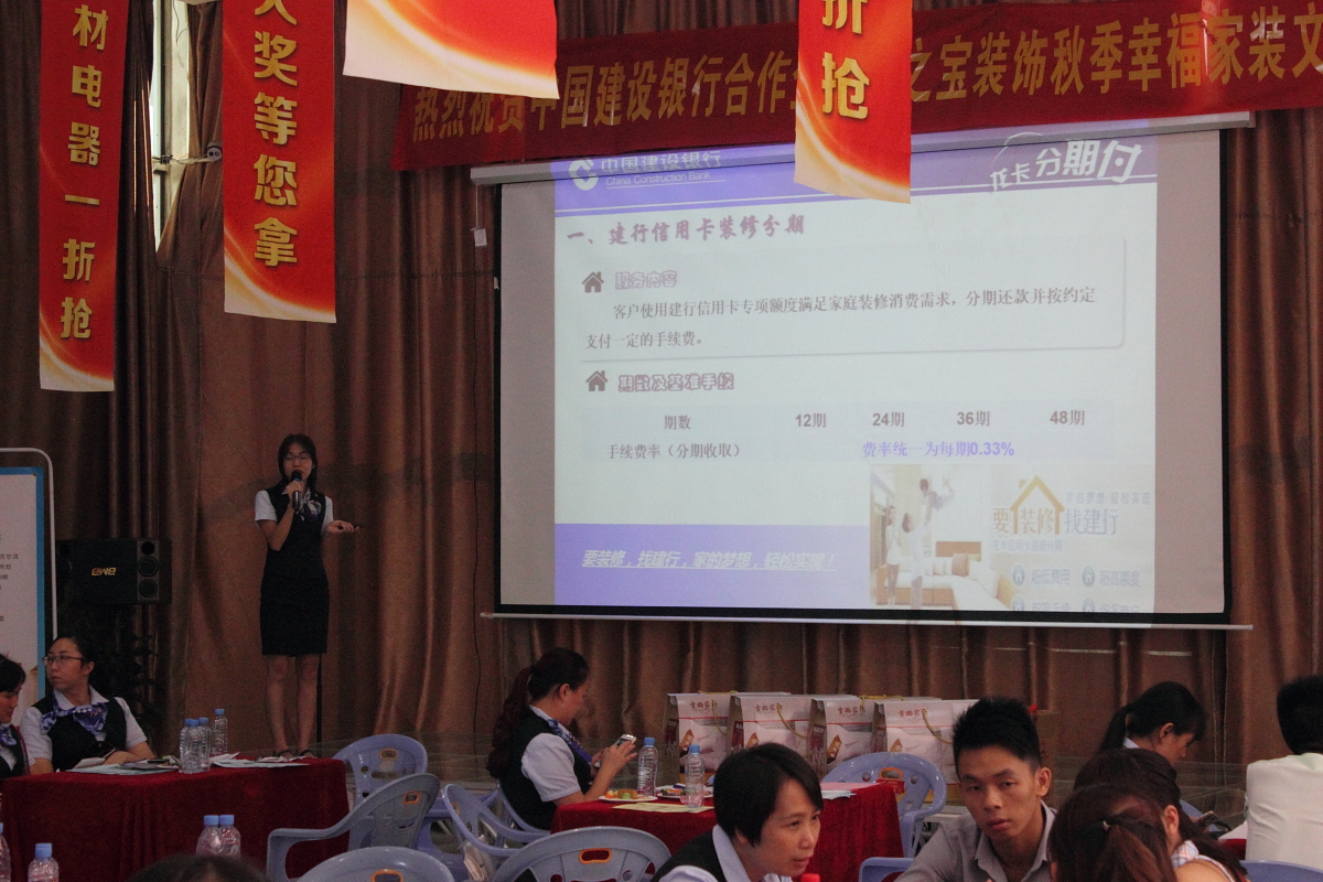10月1日,中國建設銀行攜手家之寶在柳州家居1號館家之寶大樓大會議廳隆重舉辦“裝修貸款分期業務推介會”,雙方精誠合作,為業主帶來超強裝修優惠力度,幫助業主更輕松地實現美好家居夢想。