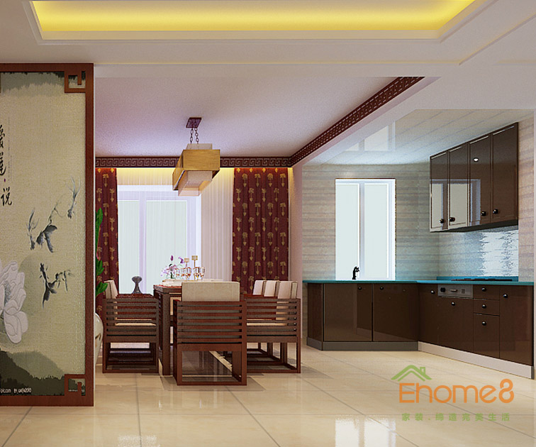 彩虹城東郡72平米中式餐廳客廳裝修效果圖