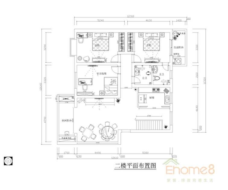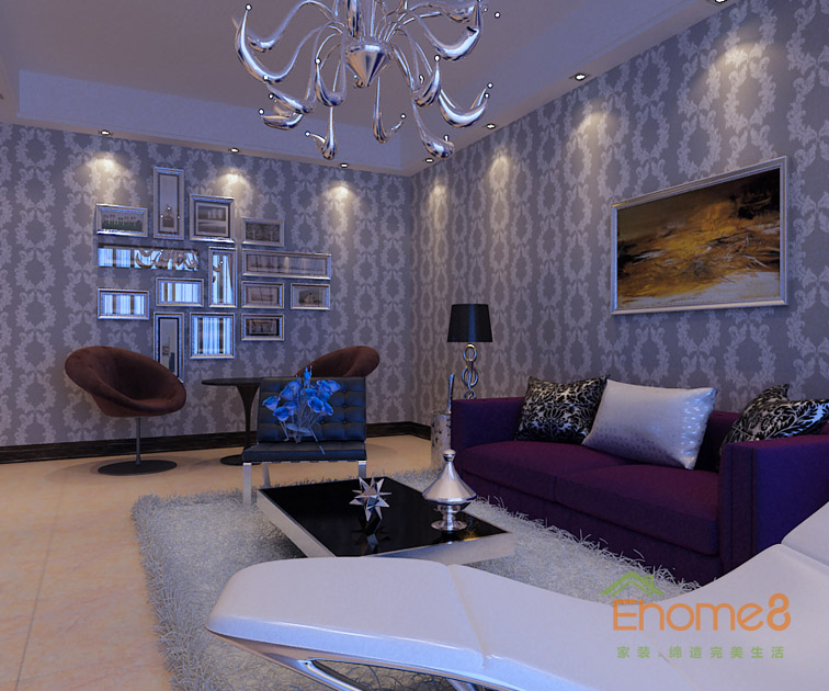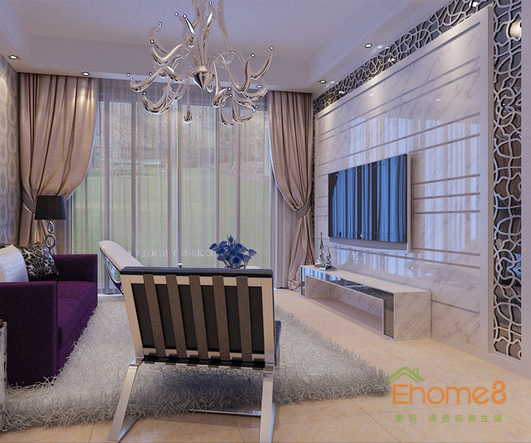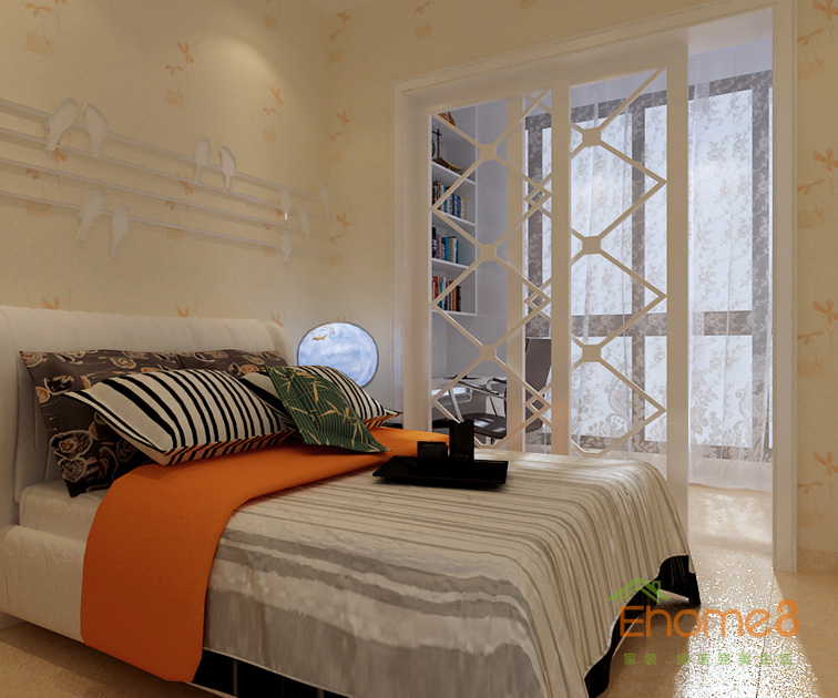 在水一方兩房一廳82㎡美式風格裝修效果圖