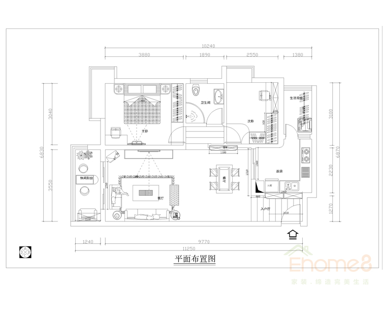 康城68㎡兩房一廳現代簡約風格裝修效果圖