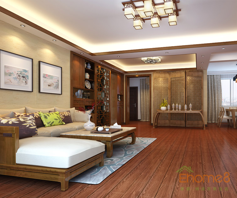 桃源居93㎡三房一廳中式風格裝修效果圖