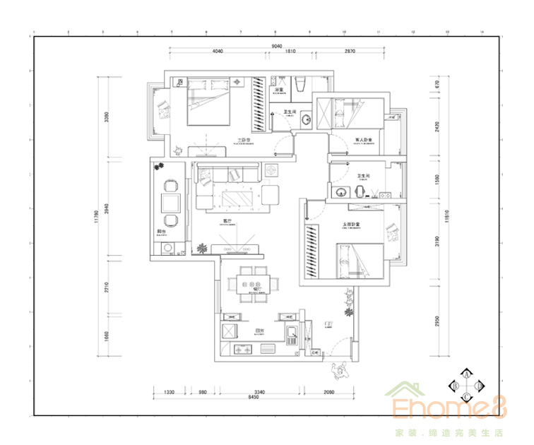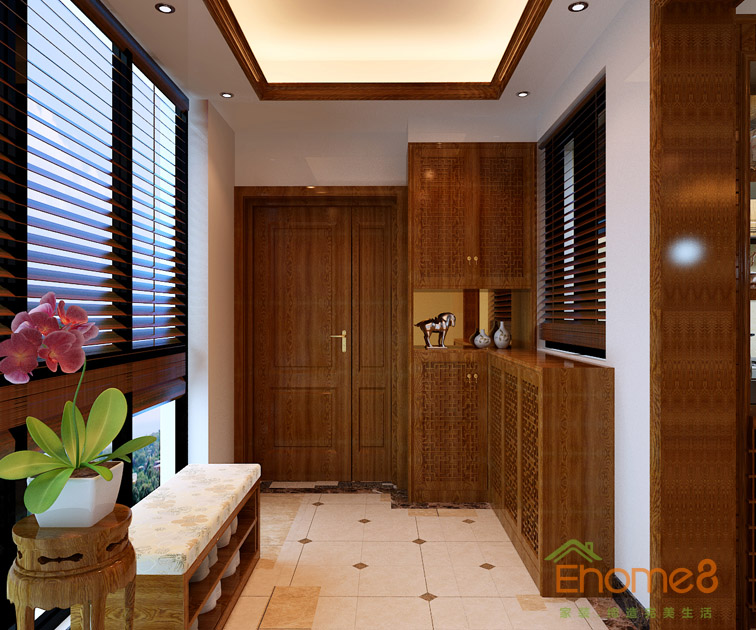 陽光100城市廣場97㎡三房一廳中式原木風格裝修效果圖