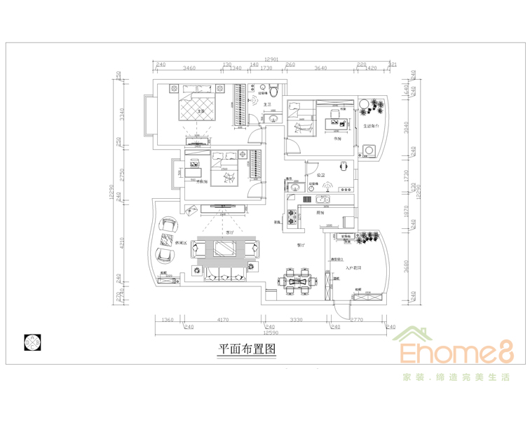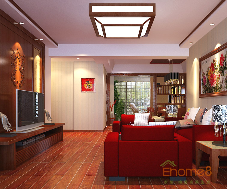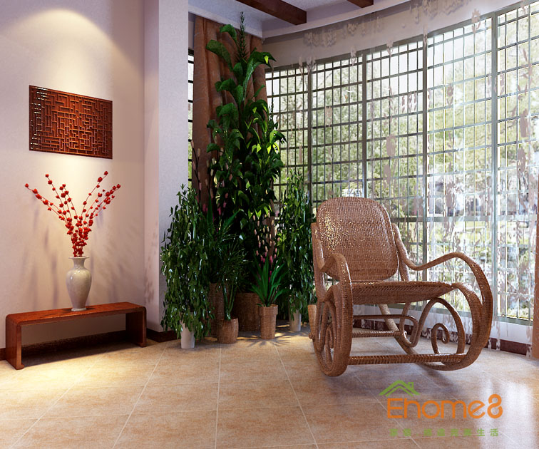 和諧家園98㎡三房一廳中式田園風格裝修效果圖