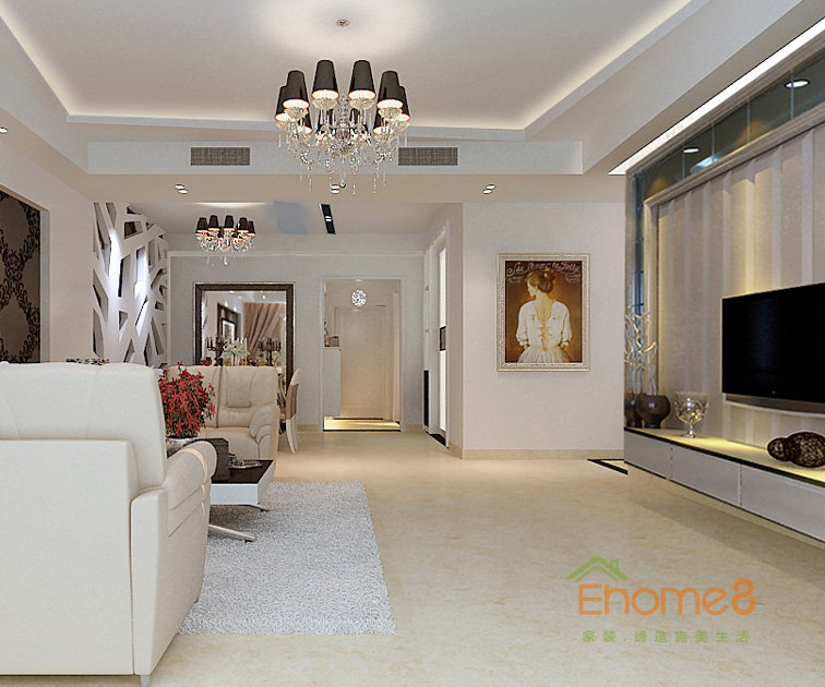 天鵝湖72㎡兩房一廳現代風格裝修效果圖