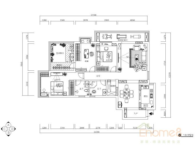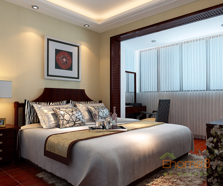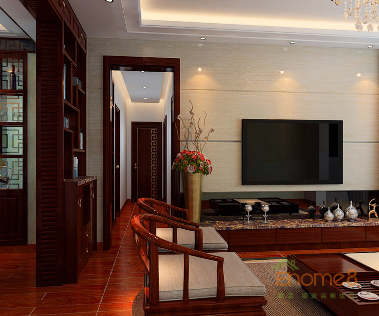 紫荊花園69㎡兩房一廳中式風格裝修效果圖
