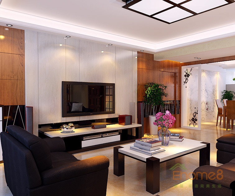 紫荊花園119㎡三房一廳中式風(fēng)格裝修效果圖