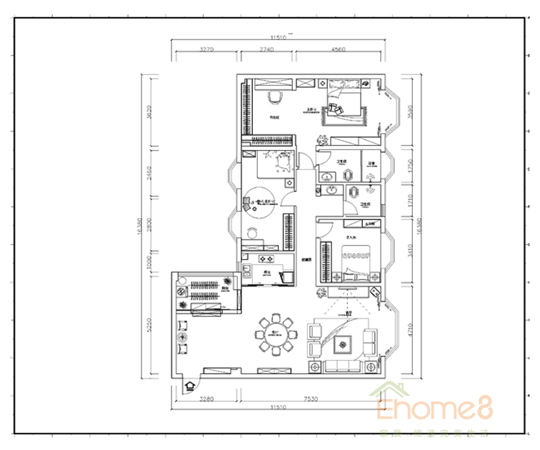 83㎡兩房一廳現代簡約風格裝修效果圖