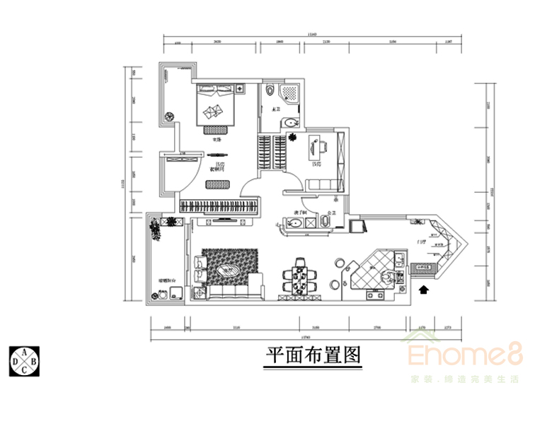 山語城78㎡兩房一廳美式風格裝修效果圖