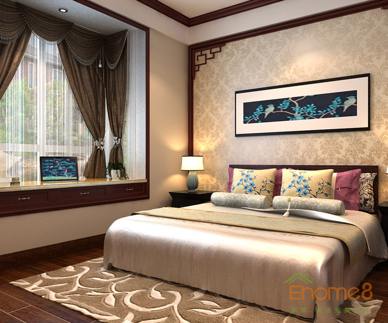 在水一方75㎡兩房一廳中式風格裝修效果圖