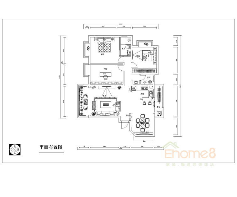 在水一方72㎡兩房一廳中式風格裝修效果圖