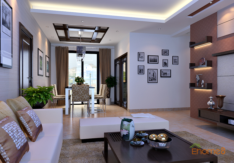 碧園大城小院三房一廳96㎡懷舊風格裝修效果圖
