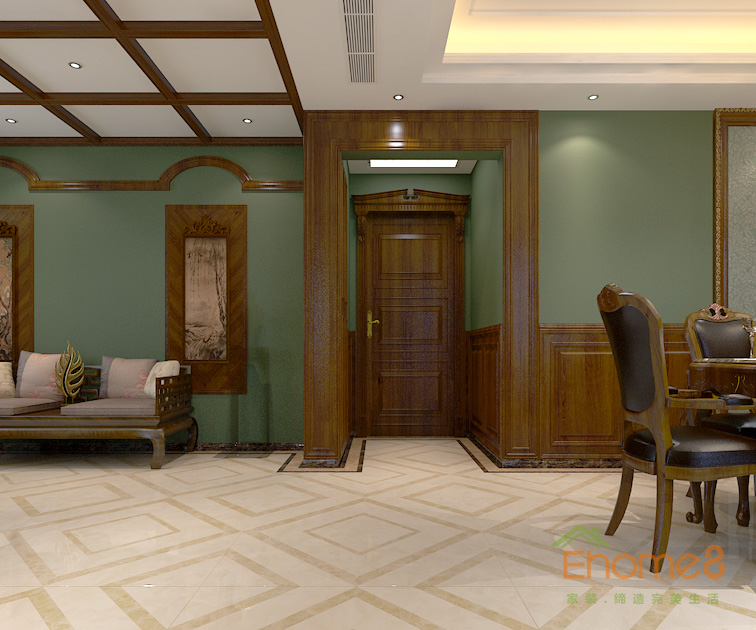 中式紅木裝修書(shū)房效果圖