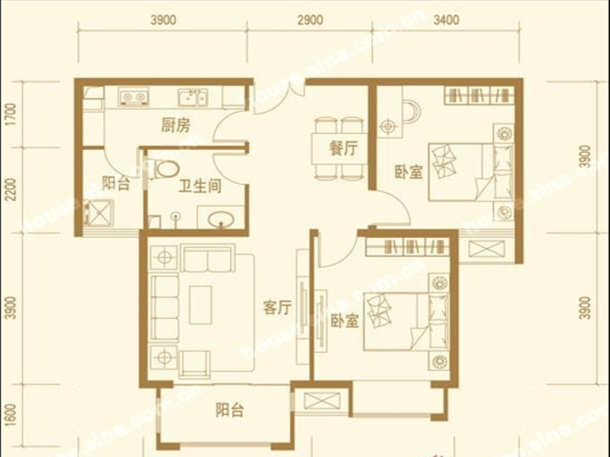 碧園大城小院兩房一廳76㎡現代簡約風格裝修效果圖