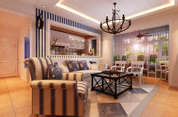 盛世中華三房一廳90㎡地中海裝修效果圖
