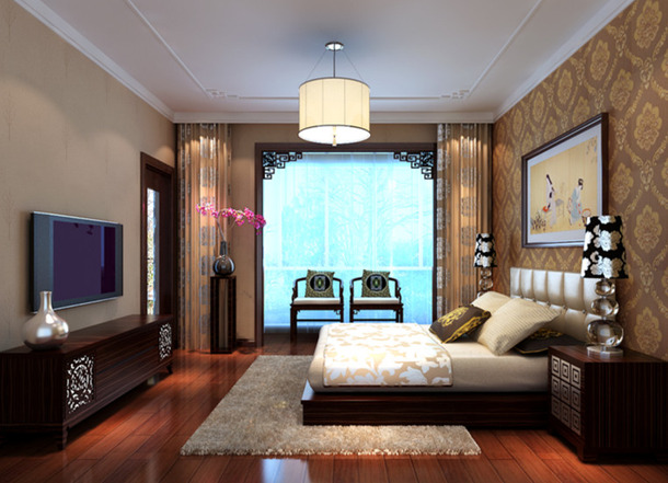 山語城三房一廳90㎡中式原木風格裝修效果圖