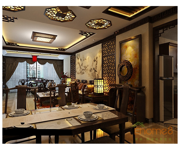 中式裝修風格餐廳效果圖