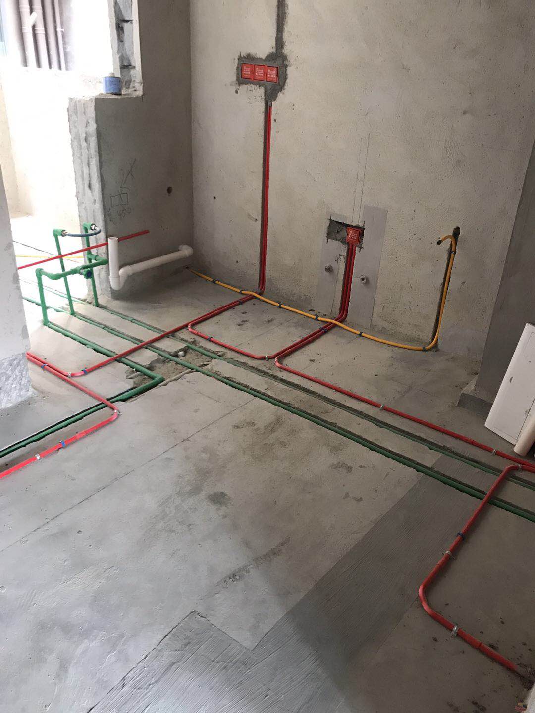 單管單槽,按國標工藝走線管水管,橫平豎直,八字拐角,采用德系歐標的水電材料