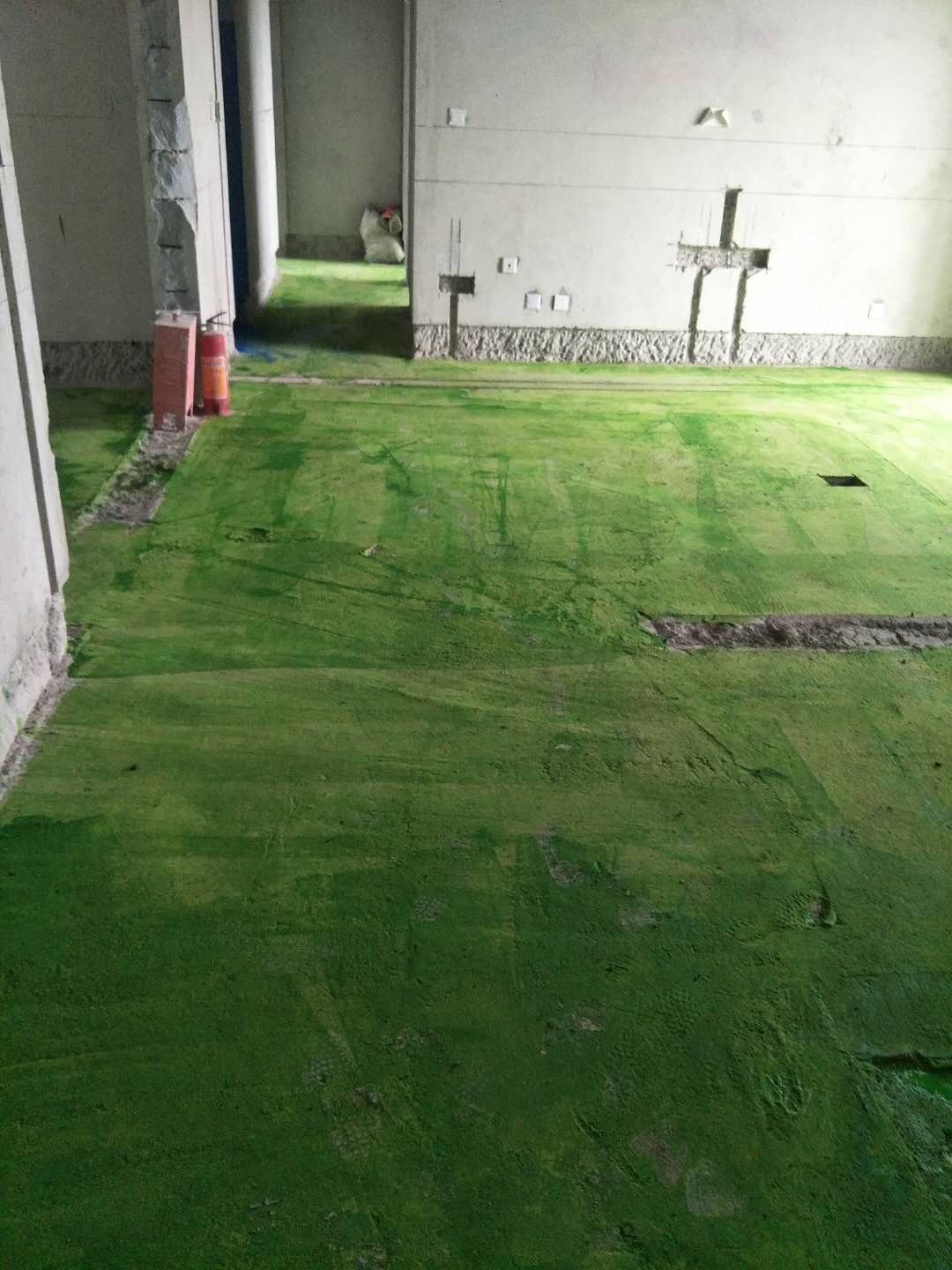 刷綠環,綠環地固是一種水性環保涂料,防止工地揚塵,增加水泥砂漿和地面的粘合度