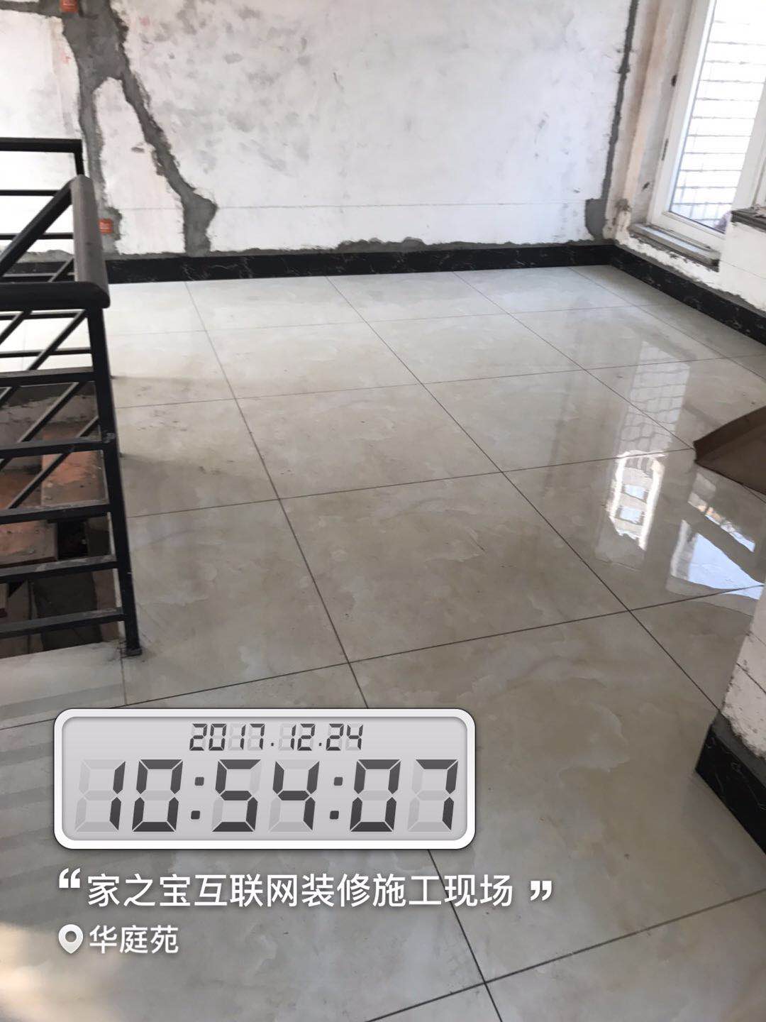 瓦工施工,平整對(duì)縫,鋪貼完畢即刻進(jìn)行成品保護(hù),鋪好地膜。