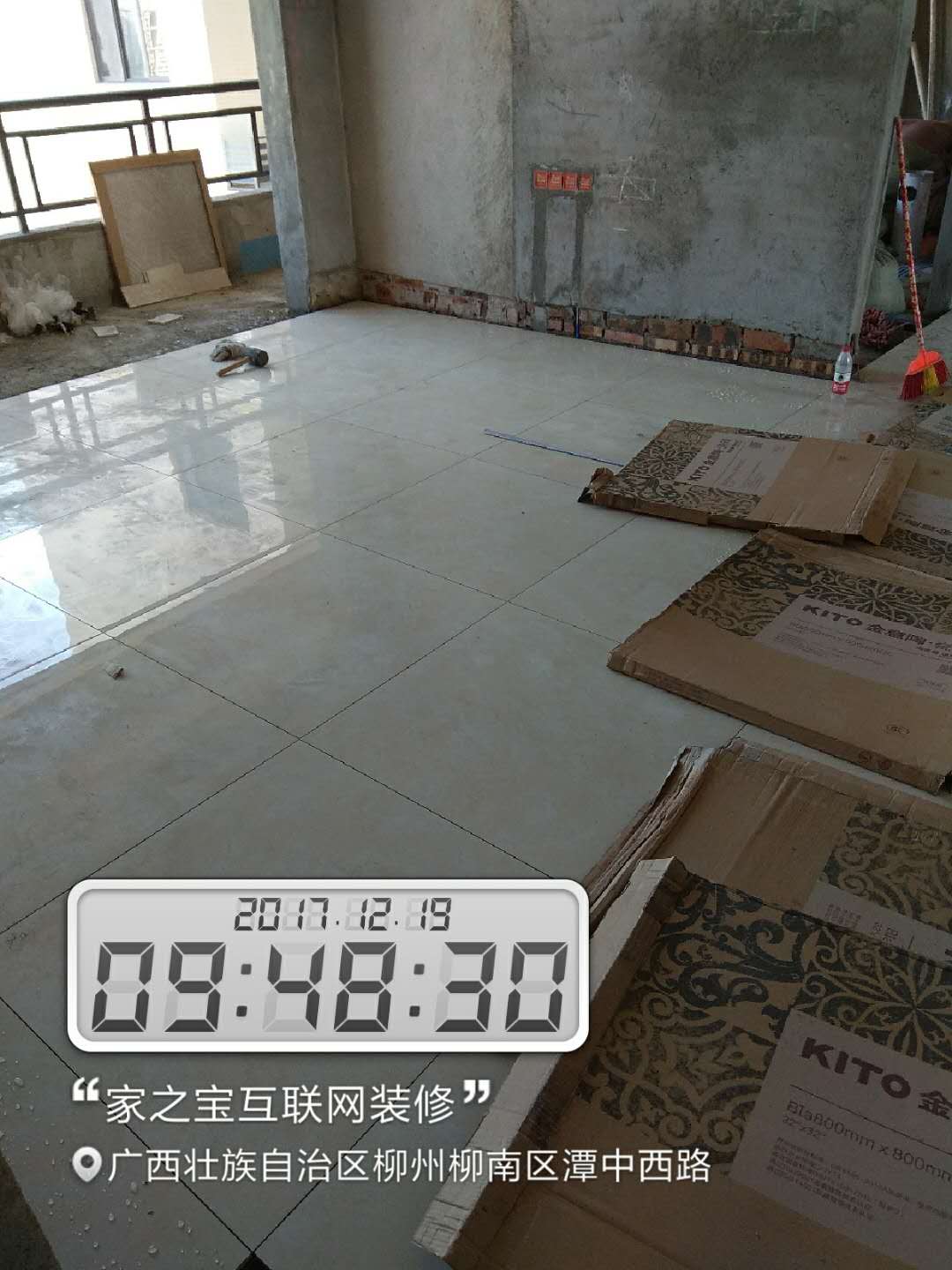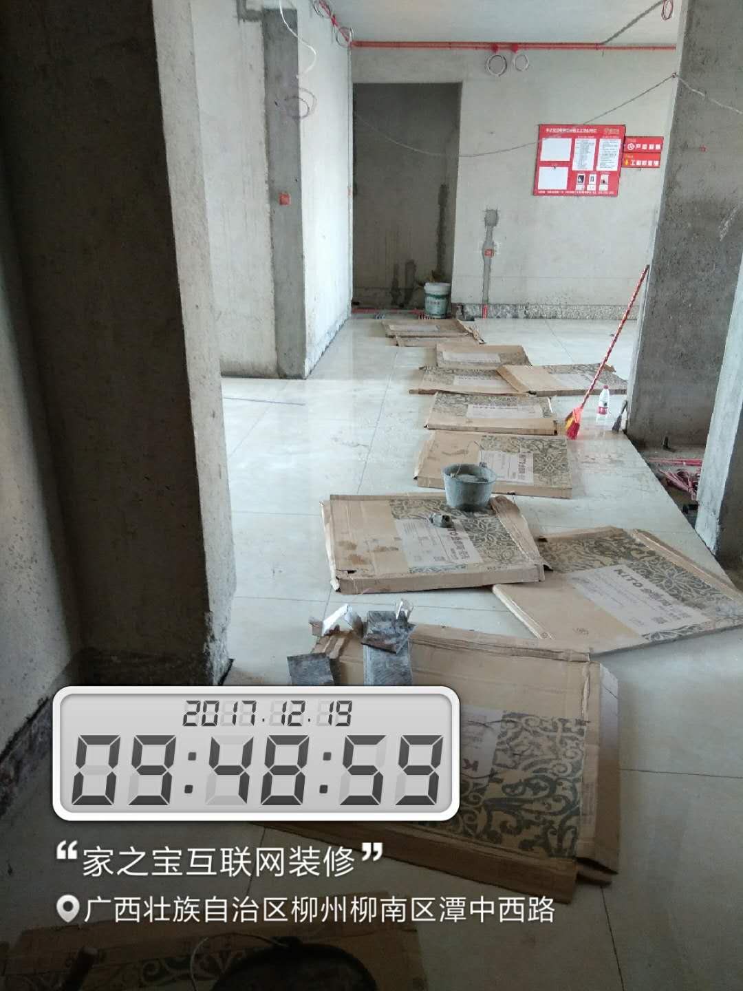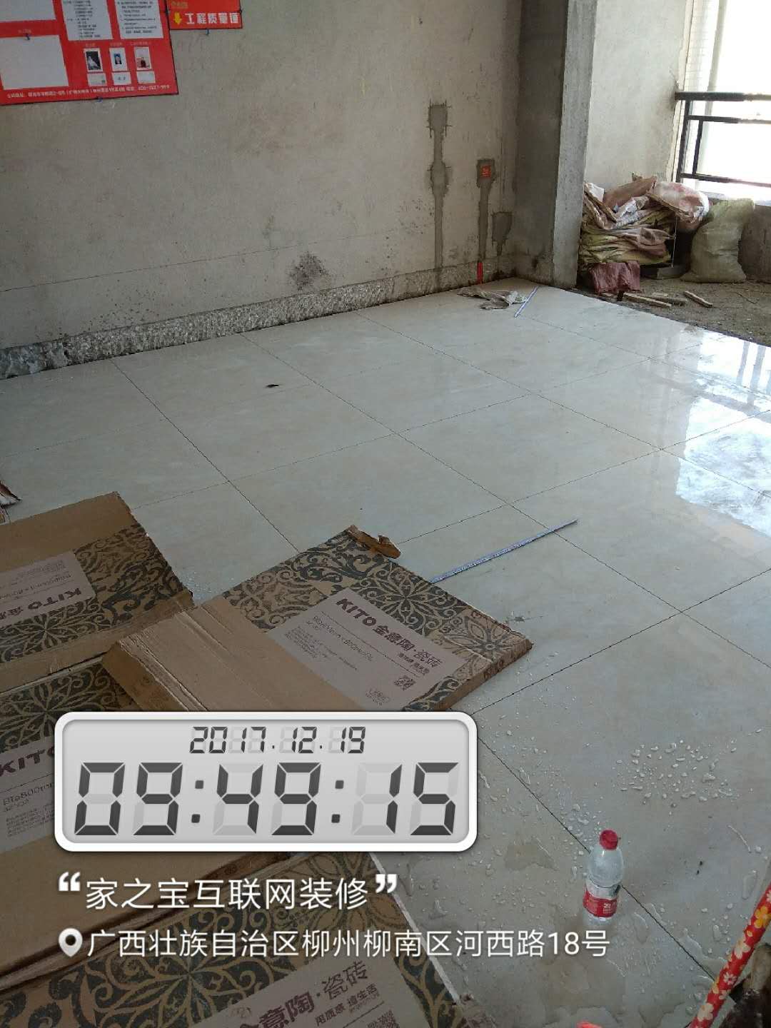 瓦工施工,平整對縫,鋪貼完畢即刻進行成品保護,鋪好地膜。