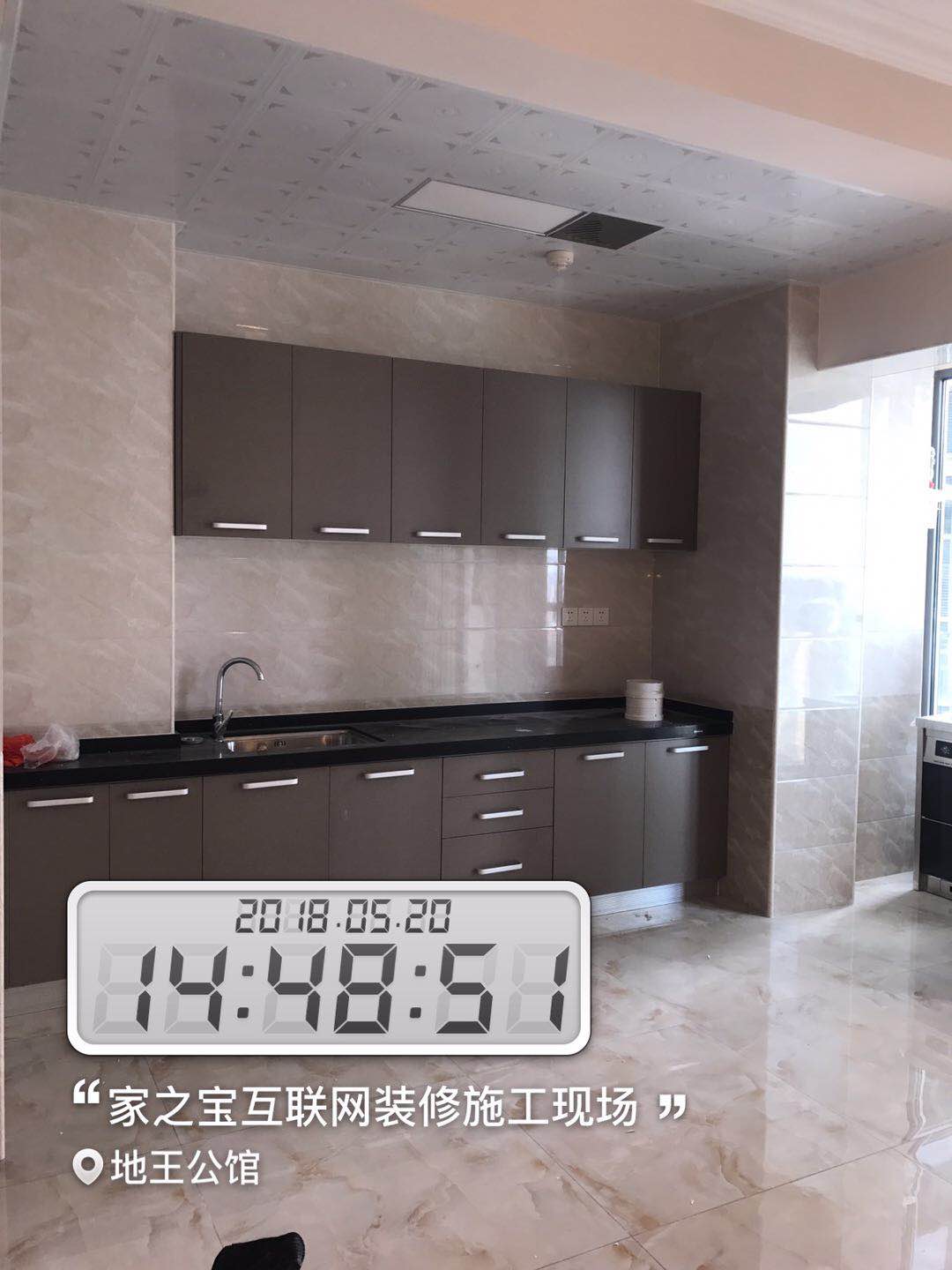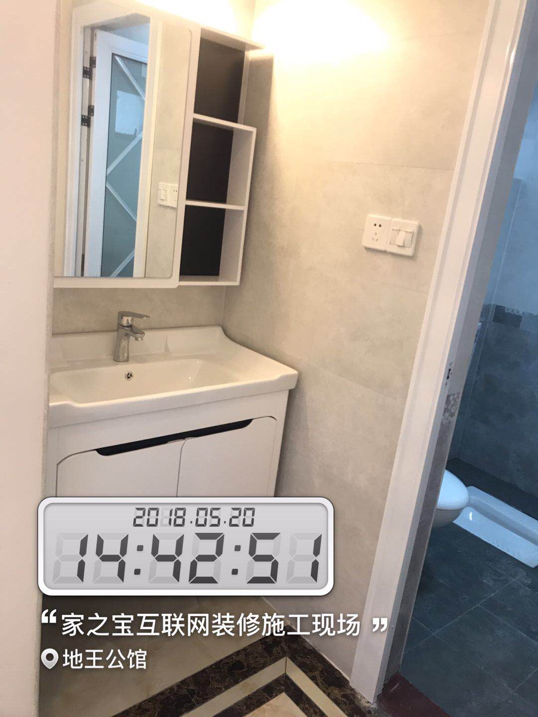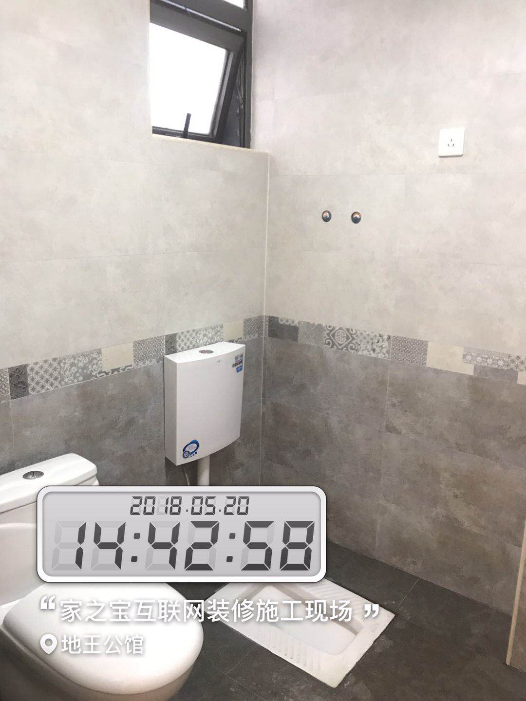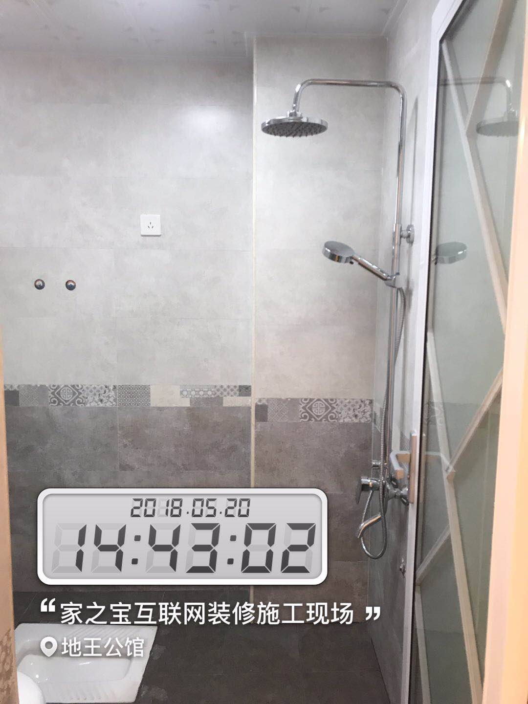 墻磚鋪貼,使用水平儀投射水平線,陽角處采用磨邊45°碰角工藝。
