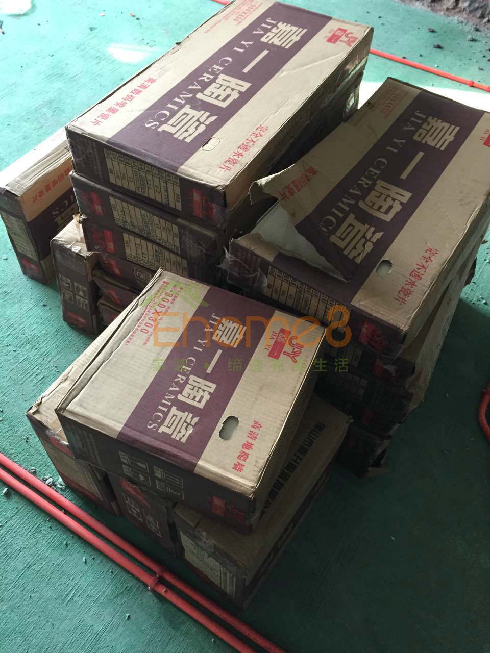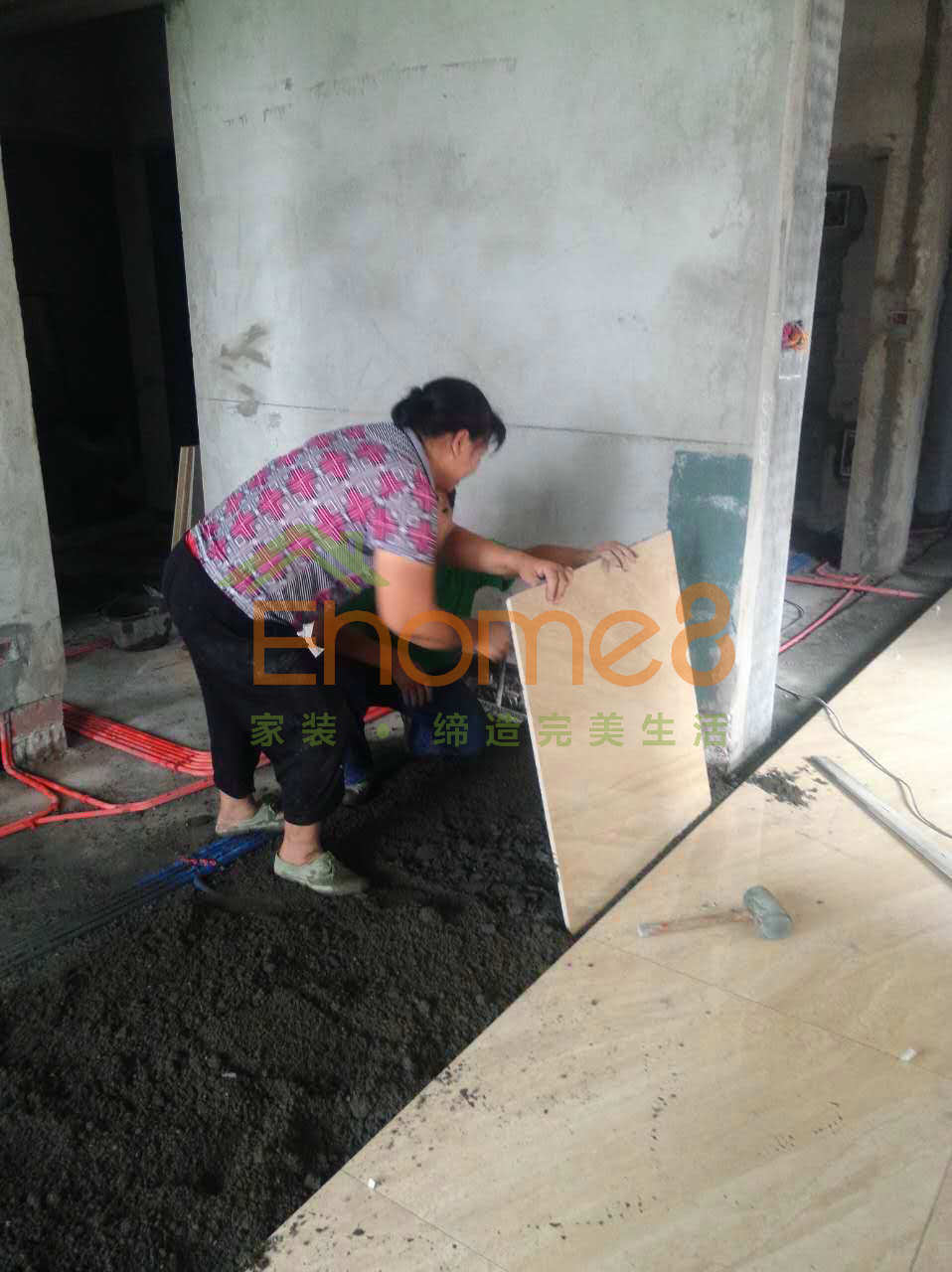 水電驗收通過,運送瓷磚及水泥砂漿等