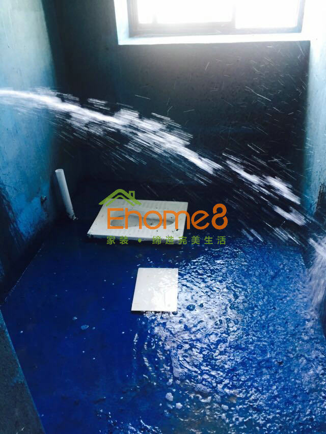 衛(wèi)生間門安裝及衛(wèi)生間有色防水的涂刷及閉水試驗(yàn)。