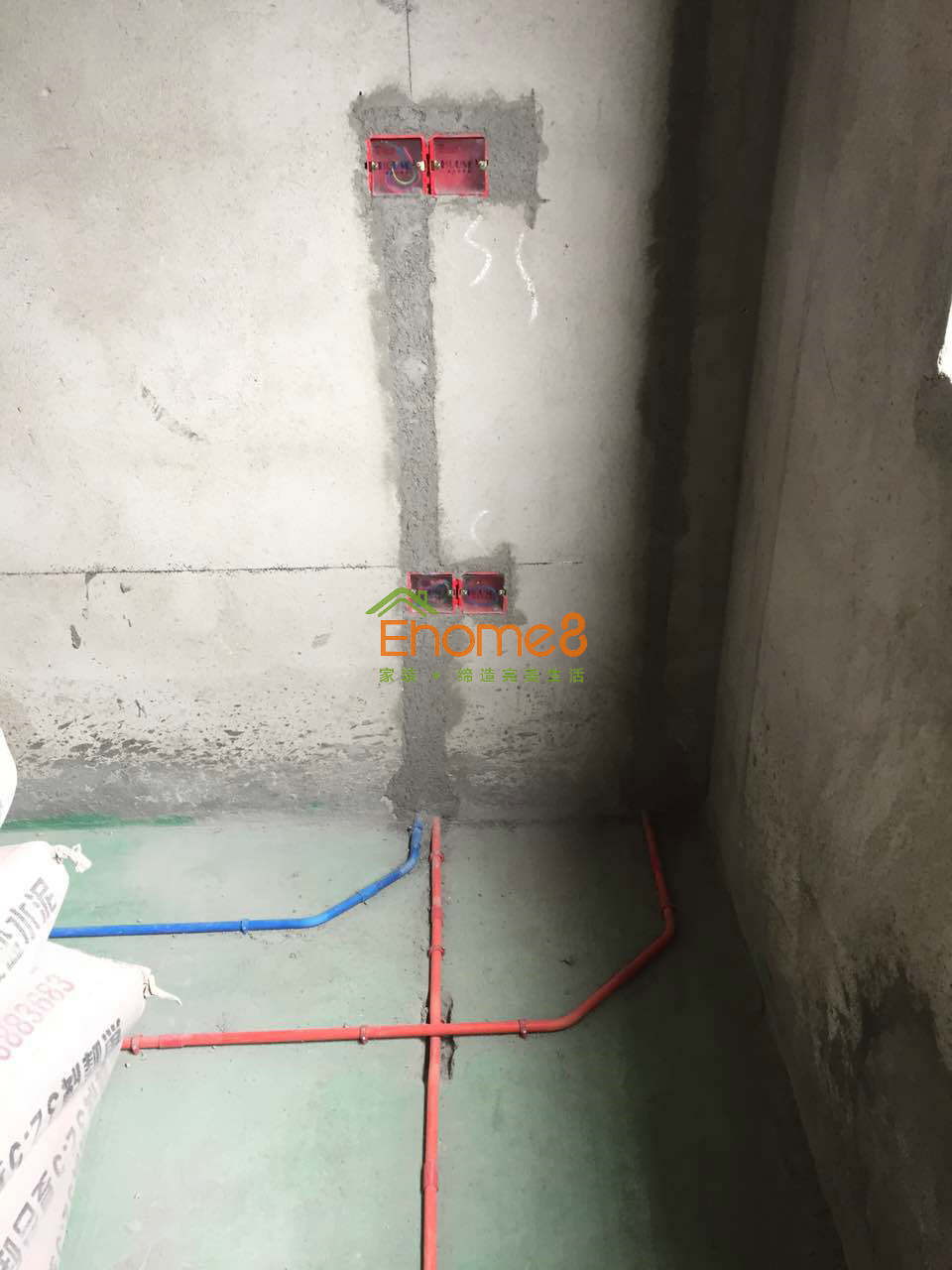 衛生間門安裝及衛生間有色防水的涂刷及閉水試驗、鋪磚等