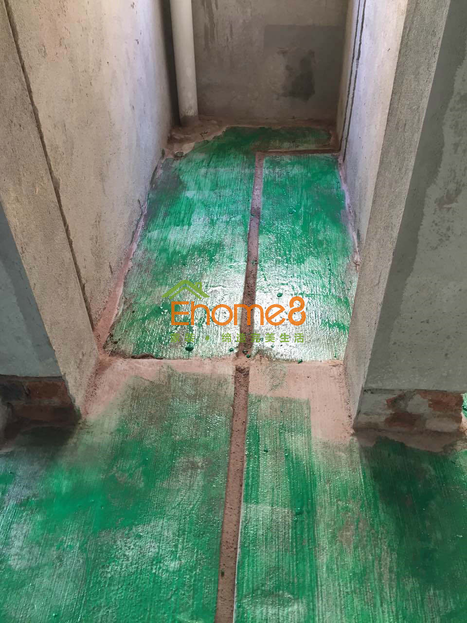 衛生間門安裝及衛生間有色防水的涂刷及閉水試驗,鋪磚完成。