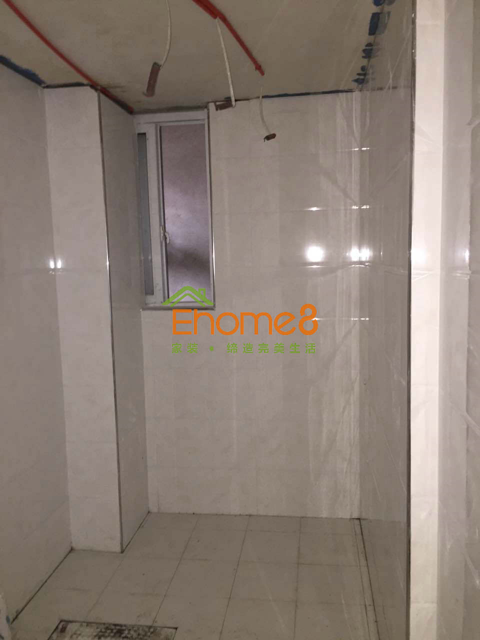 衛生間門安裝及衛生間有色防水的涂刷及閉水試驗、鋪磚等