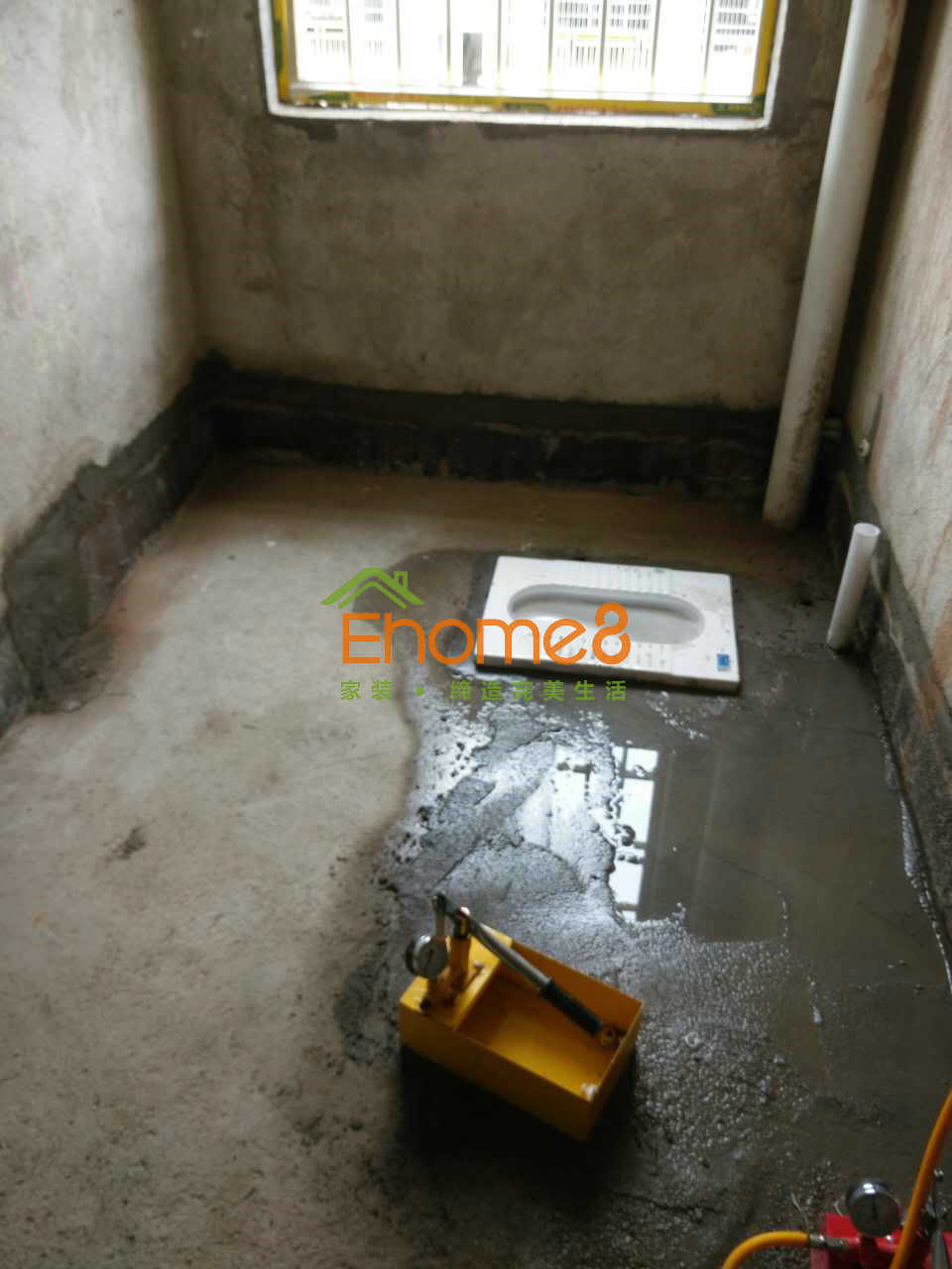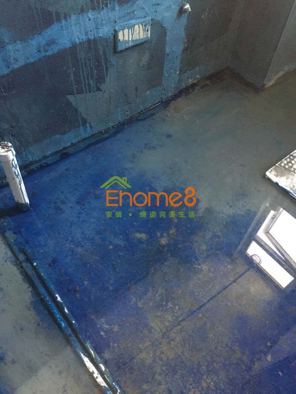 衛(wèi)生間門安裝及衛(wèi)生間有色防水的涂刷及閉水試驗(yàn),鋪磚完成。