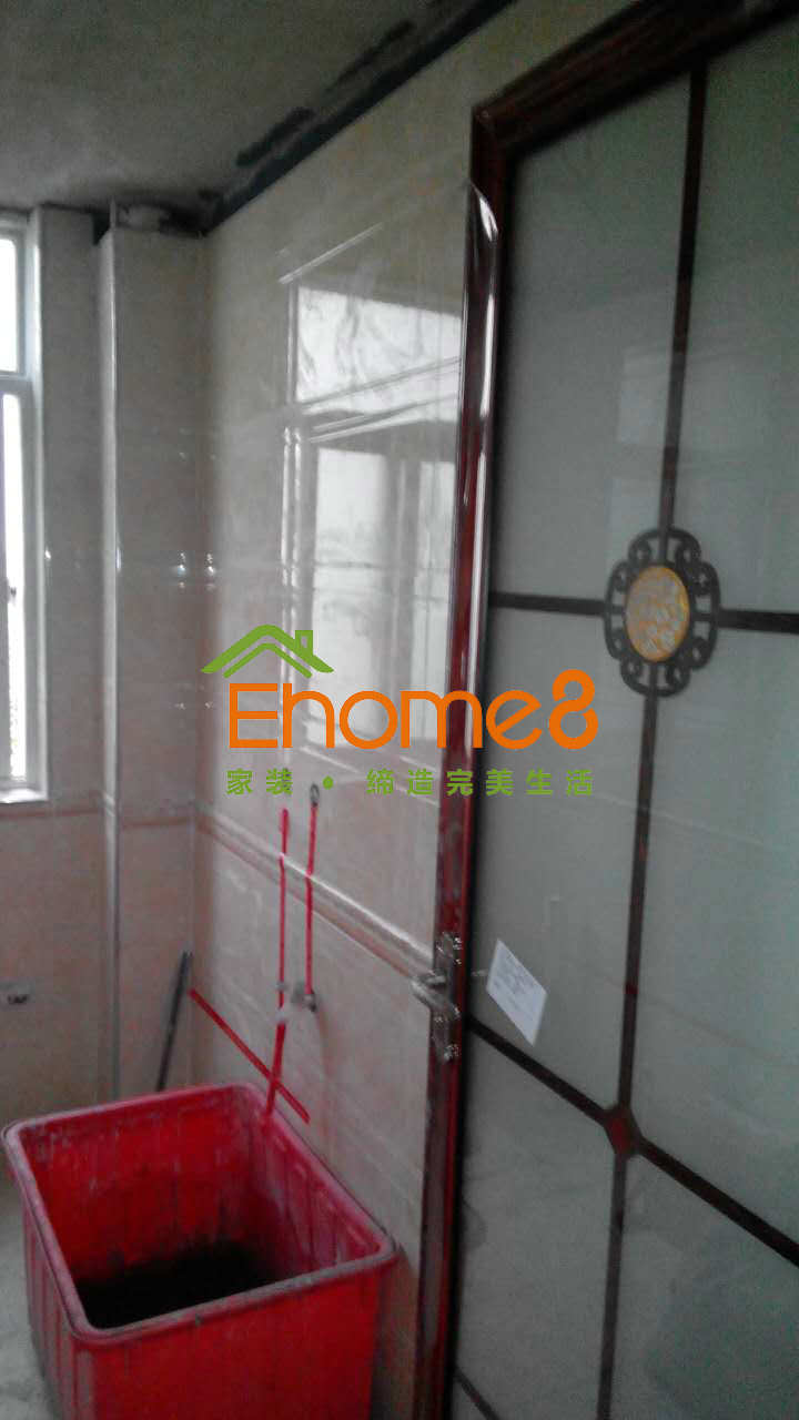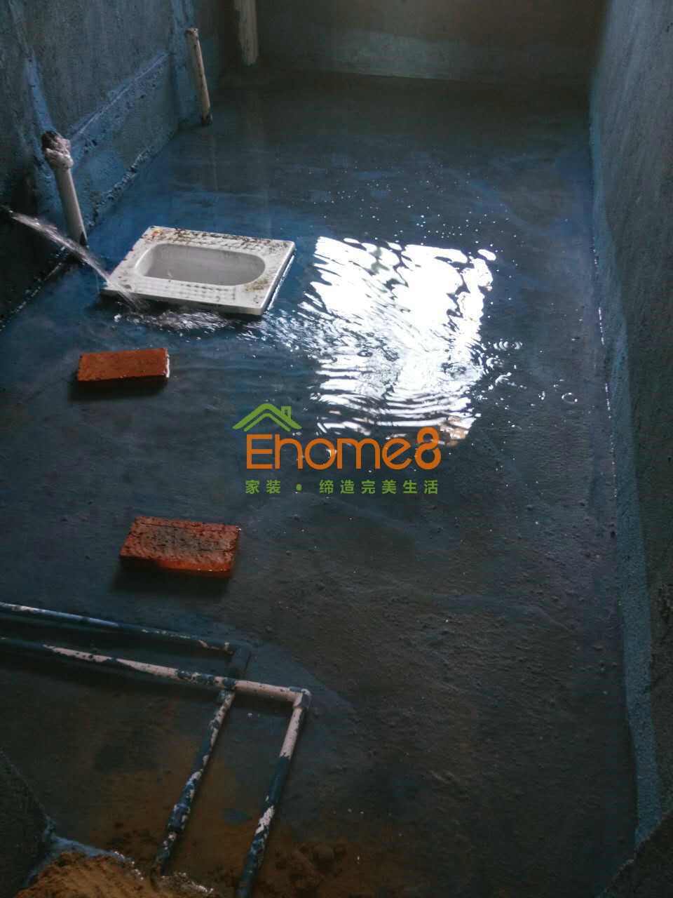 衛生間門安裝及衛生間有色防水的涂刷及閉水試驗,鋪磚完成