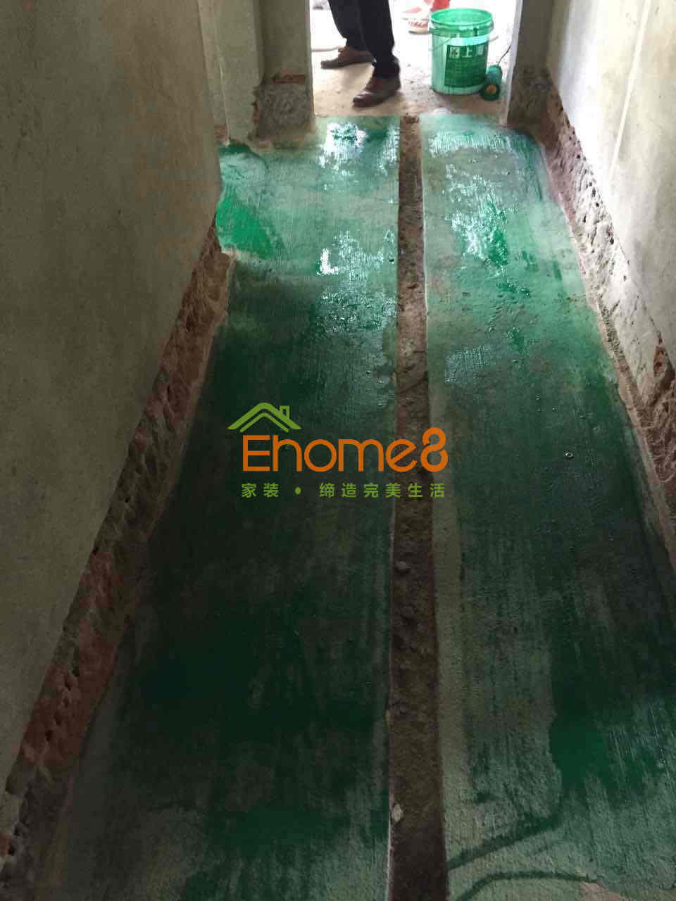 衛生間門安裝及衛生間有色防水的涂刷及閉水試驗,鋪磚完成。