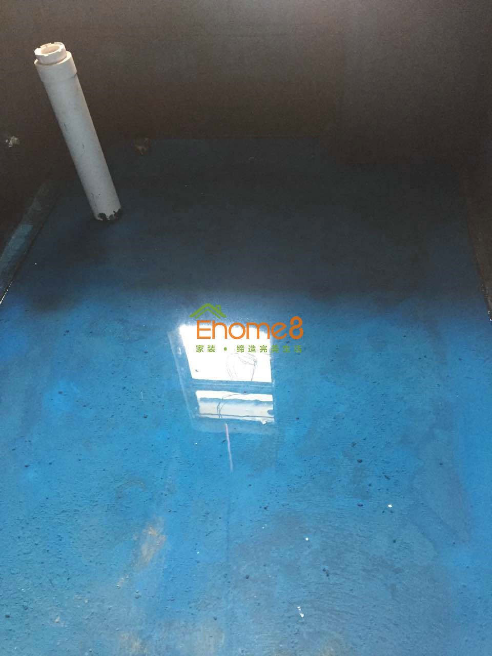 衛(wèi)生間門安裝及衛(wèi)生間有色防水的涂刷及閉水試驗(yàn),鋪磚完成。