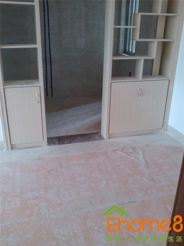 瓦工檢驗,粉紅色的那條線是檢測貼磚的垂直度